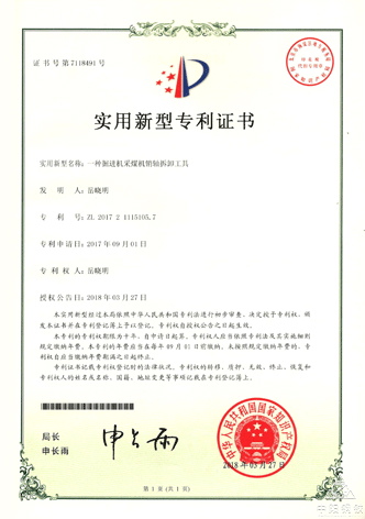 2017年,他發明的“一種液力偶合器拆卸工具”、“一種掘進機采煤機銷軸拆卸工具”、“一種皮帶輸送機刮料器”獲得實用新型專利。